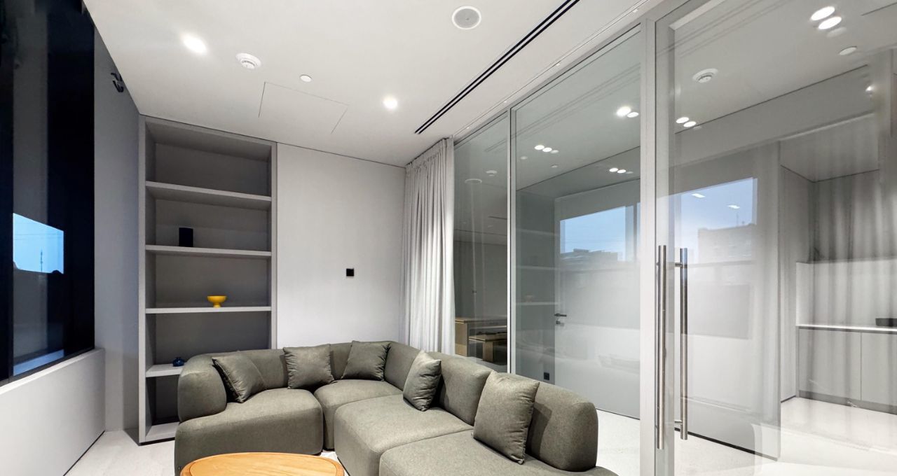 - Функциональная гостиная зона с удобным диваном, готова стать (под ваш запрос) рабочим кабинетом, домашним кинотеатром или уютным пространством для приёма гостей.