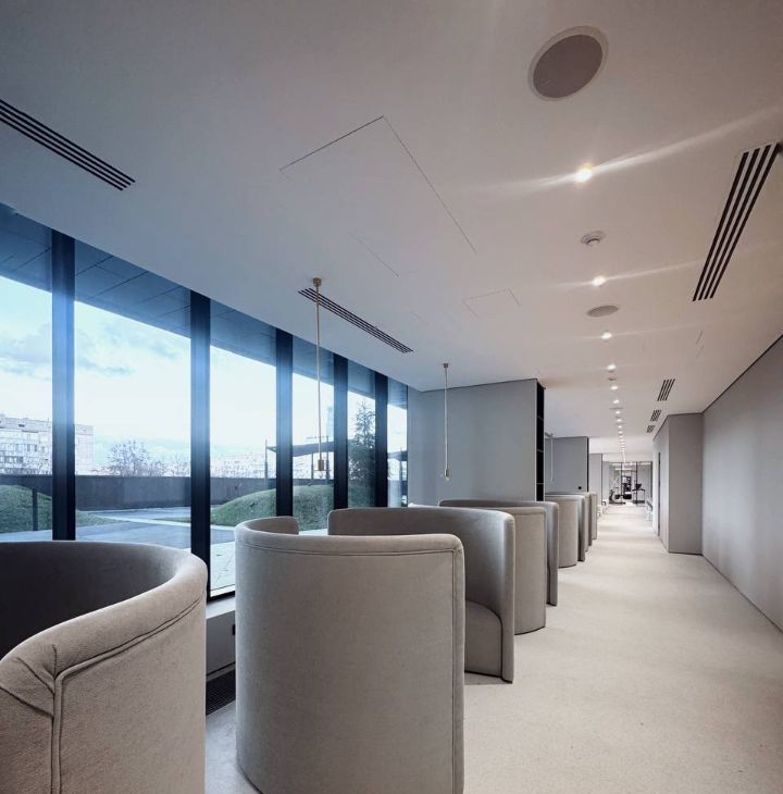 • Система вентиляции и кондиционирования "Фанкойл" поддерживает оптимальный микроклимат и чистоту воздуха.