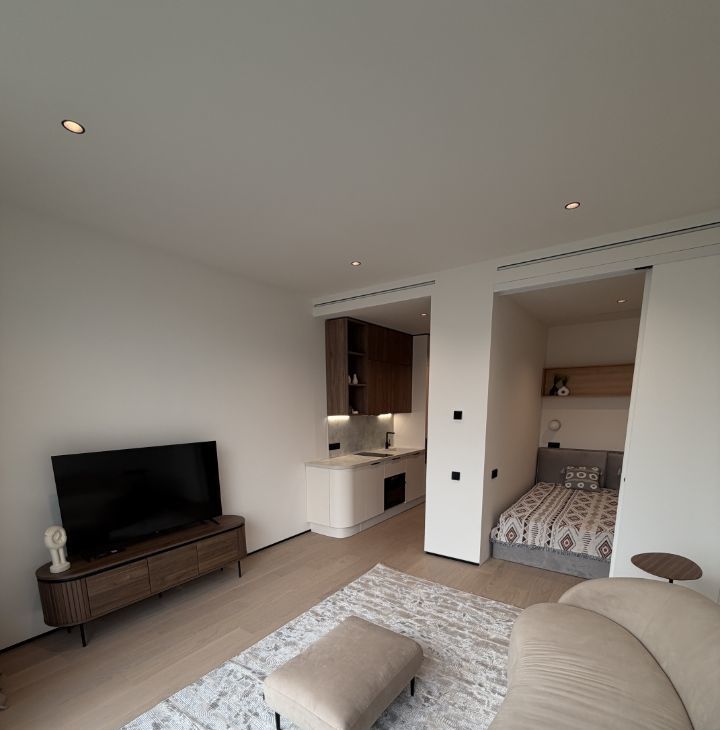 Уютная светлая большая гостиная, удобная спальная зона для двоих изолируется при желании раздвижной дверью. Рядом Нескучный сад. удобная транспортная развязка и развитая инфраструктура (Valiko, Азбука вкуса, Surf Cafe, Вкусвилл).