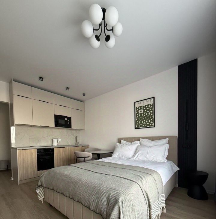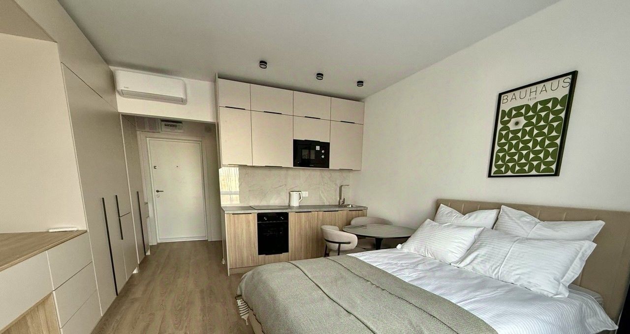 В долгосрочную аренду впервые сдается полностью оборудованная новой техникой и мебелью студия с дизайнерским ремонтом в ЖК "Люблинский парк" (ул. Люблинская 72ак1), 13 этаж.