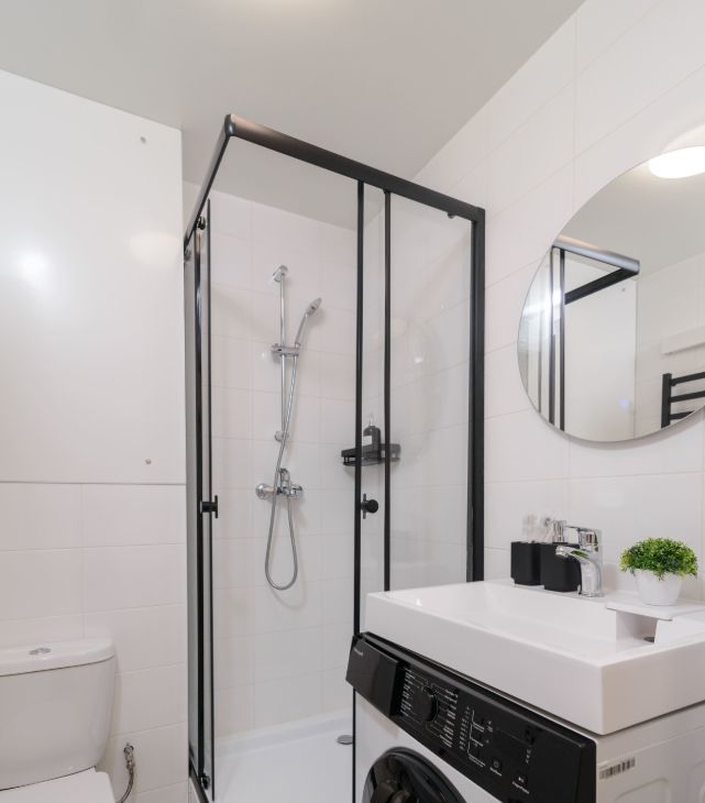 - Cанузел совмещённый, душ, стиральная машина, фен, утюг