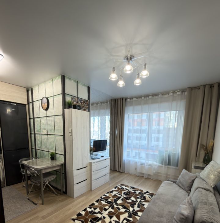 Сдаётся уютная меблированная студия площадью 28 м² с изолированной спальной зоной. Квартира полностью готова для комфортного проживания: в наличии удобная мебель и бытовая техника — холодильник, духовой шкаф, чайник, микроволновая печь, газовая варочная панель и посудомоечная машина.