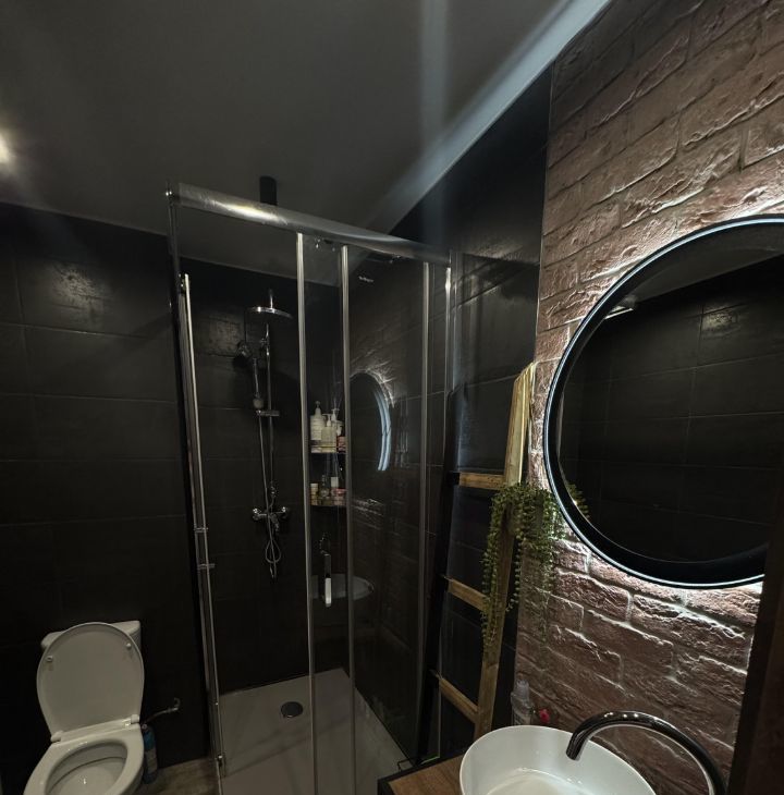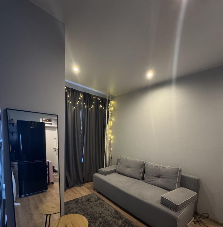 Квартира радует дизайнерским ремонтом и полностью готова к проживанию. В комнате и на кухне есть вся необходимая мебель. Из техники имеются кондиционер, холодильник, посудомоечная и стиральная машины. Ванная комната оборудована современной душевой кабиной. Окна выходят во двор, что делает квартиру тихой и уютной.