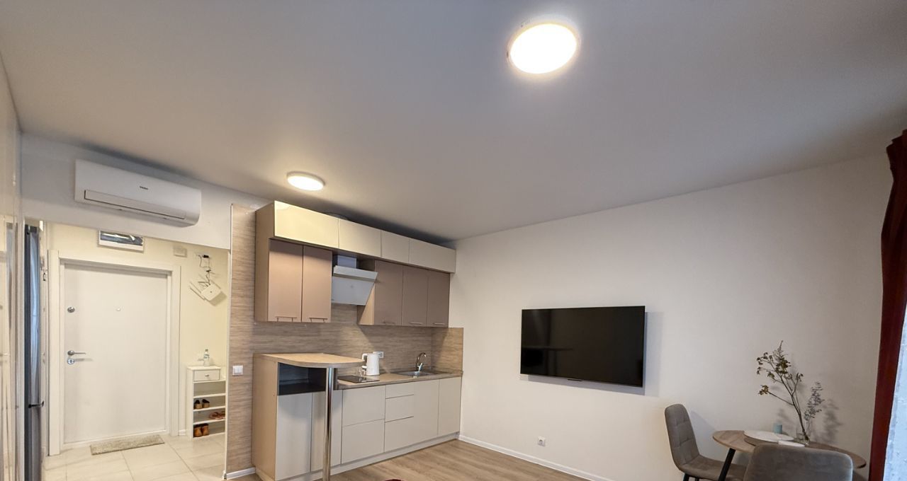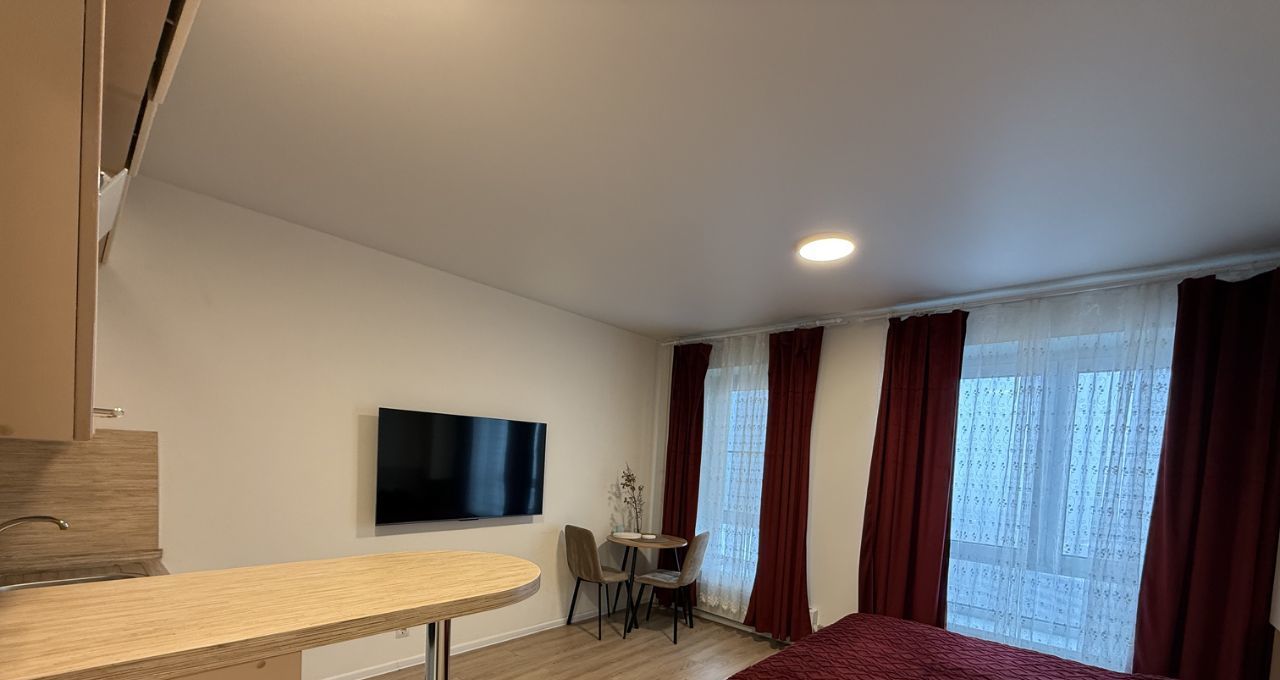 Сдается видовая уютная светлая студия в ЖК "Люблинский парк". Квартира укомплектована всем необходимым - двуспальная кровать, много мест для хранения вещей, кухонный гарнитур, обеденная зона. А также бытовая техника: холодильник, телевизор, стиральная машина, кондиционер, варочная панель, электрочайник.