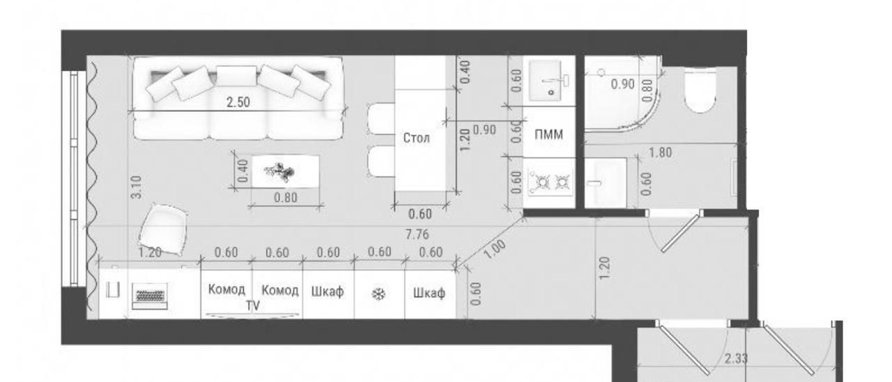 Студия Москва Малая Почтовая ул., 12 (26.0 м²)