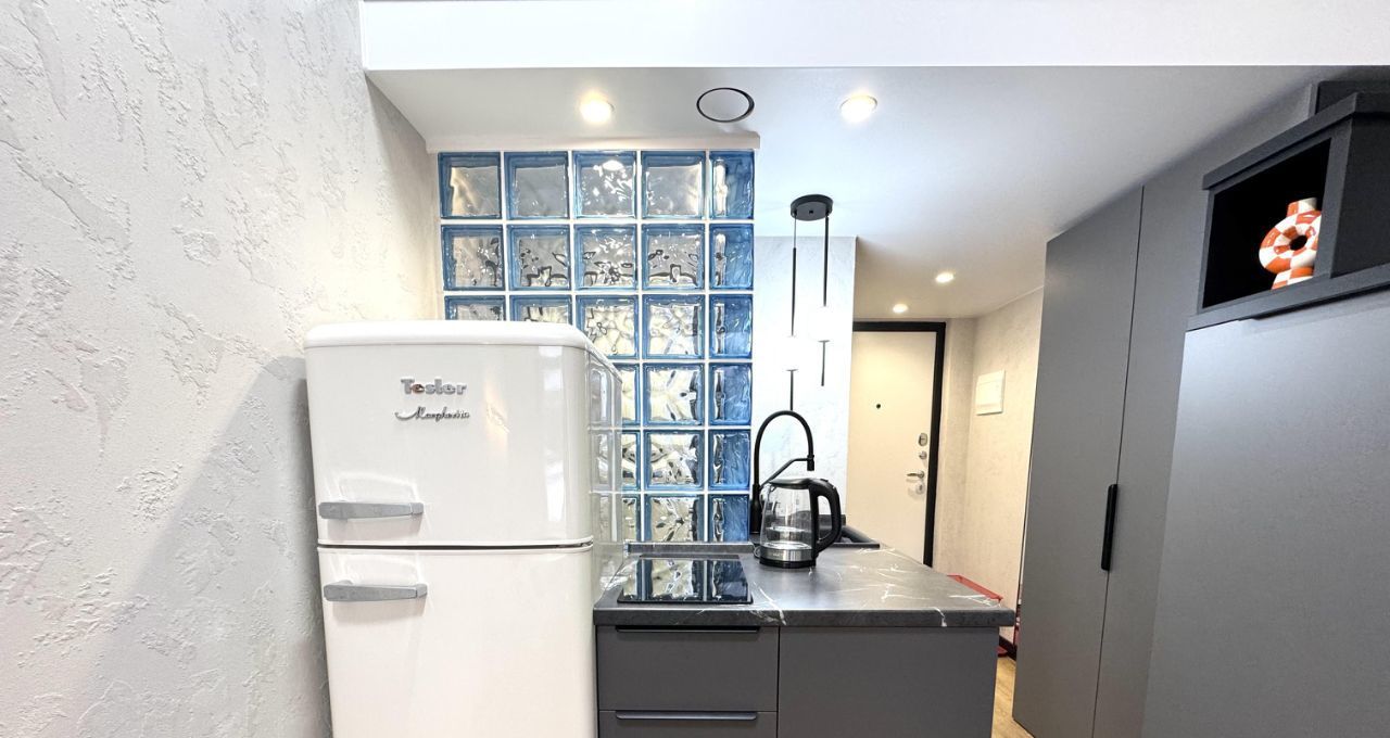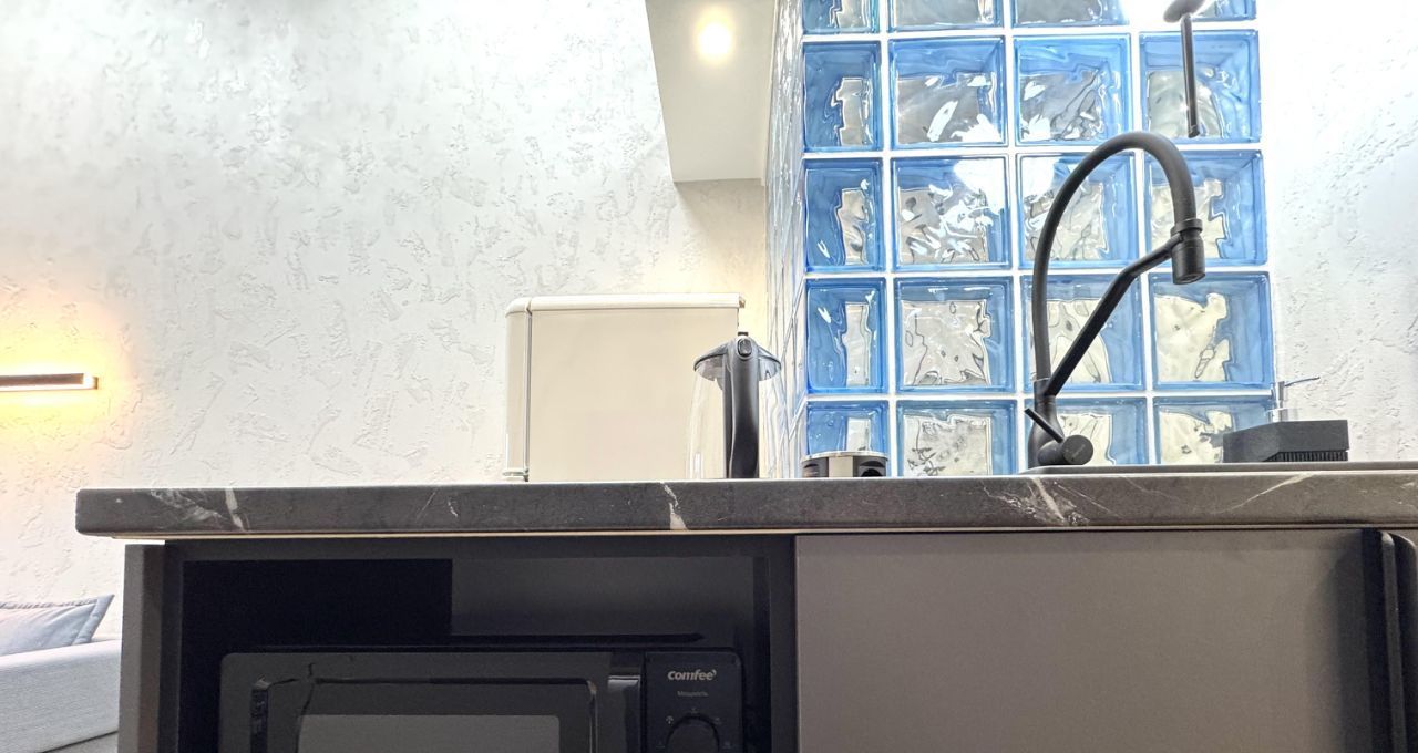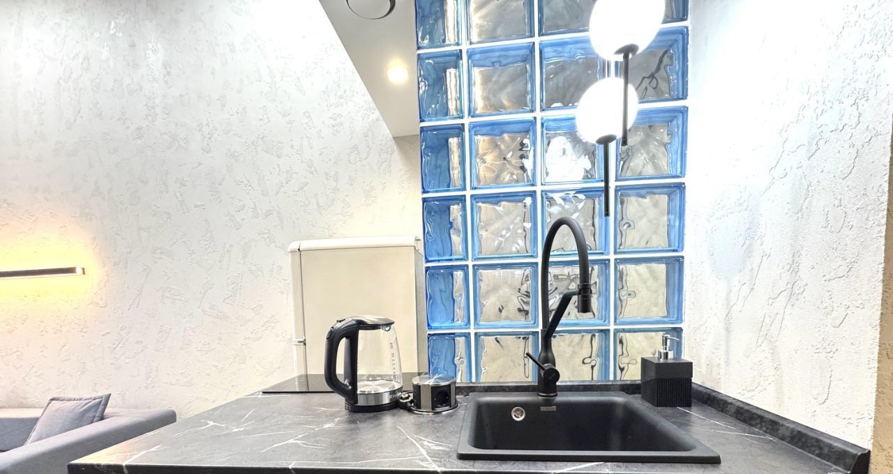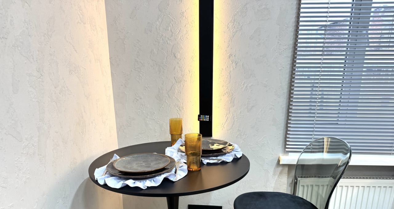 Студия оборудована всем необходимым для длительного и комфортного проживания одного или двоих человек. Общая площадь 24 м²: 17 м² первый этаж и 7 м² антресоль. Тихий и мощный кондиционер создает комфортную температуру за считанные минуты, шкаф-лестница вместит огромное количество личных вещей, с красивой и функциональной кухней будет удобно и приятно готовить. Индивидуальный высокоскоростной интернет 300 Мбит/сек. Проектор работает по wi-fi с доступом к онлайн-кинотеатрам. Студия только после ремонта, вся техника и мебель новая без износа.