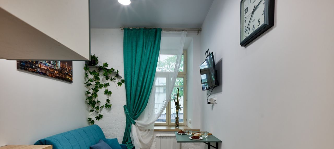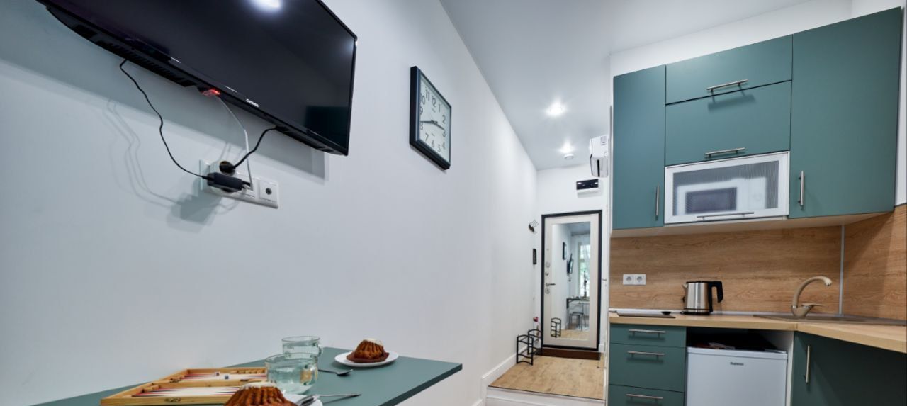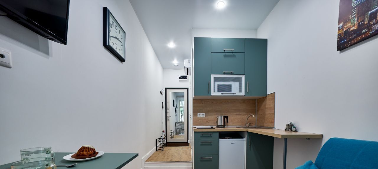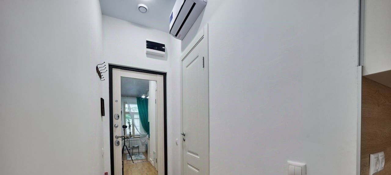 Стильная студия с дизайнерским ремонтом и тщательно продуманным каждым сантиметром площади. Студия оснащена всем необходимым для комфортной жизни: удобный раскладной диван-аккордеон, стиральная машина, кондиционер, посуда . Есть отдельная гардеробная в общем коридоре. Дом расположен в тихом дворе.