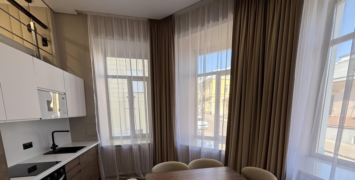 Сдается уютная студия в самом сердце Москвы, всего в 3 минутах пешком от станции метро "Китай-город". Квартира расположена на 2 этаже 6-этажного дома. Общая площадь — 30 кв. м, жилая — 20 кв. м, кухня — 7 кв. м. Высота потолков — 3.6 метра, что добавляет простора и света в ваше новое жилище.