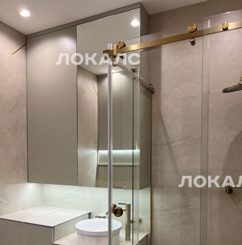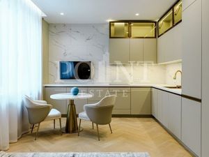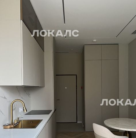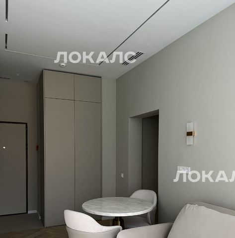 Студия с новым дизайнерским ремонтом, меблирована и оборудована бытовой техникой (включая посудомоечную машину), есть гардеробная.