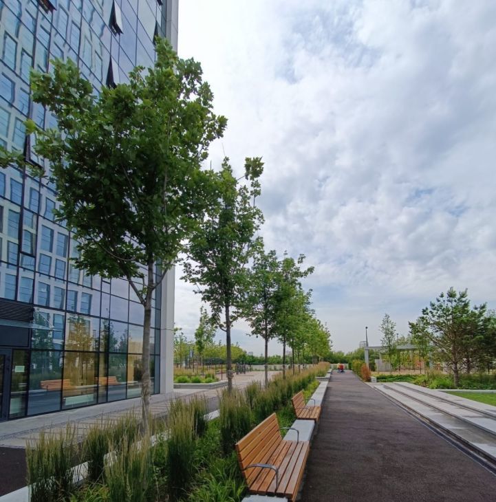 Продается уютная студия в ЖК Небо от Capital Group. Расположена на 3м этаже, по высоте как 5й за счет высокого первого этажа. Красивый вид на ЖК Событие, напротив нет застройки и дорог, в квартире тихо. Окно во всю стену добавляет пространства.