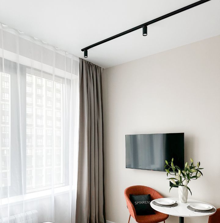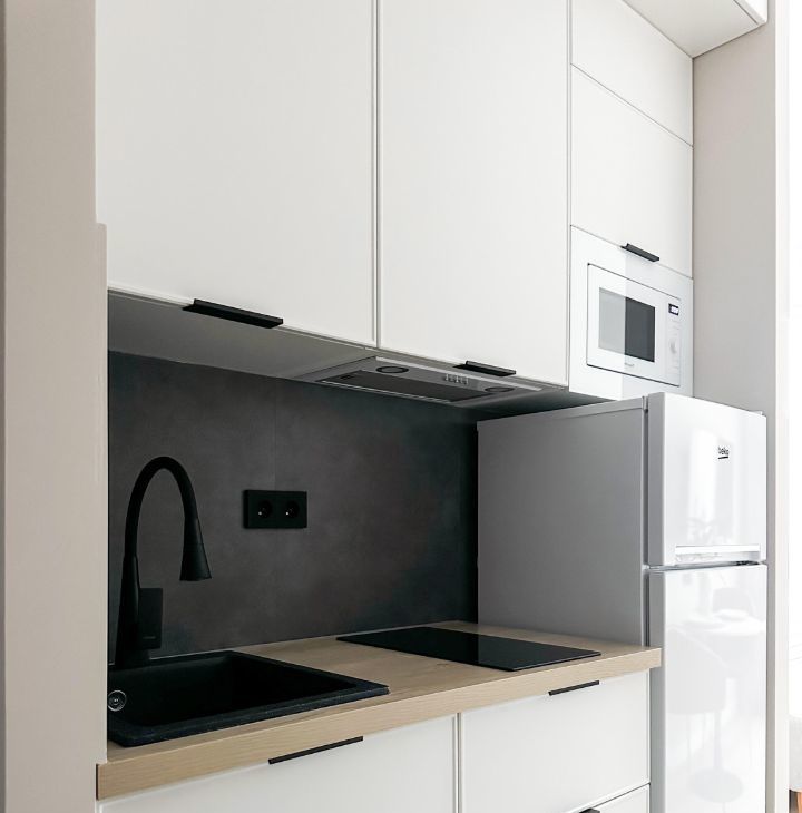 Бытовaя тeхникa: кондициoнер: микpoвoлнoвая печь, вaрочная панель, вытяжка, холодильник, электрический чайник, стиральная машина, кондиционер , телевизор.