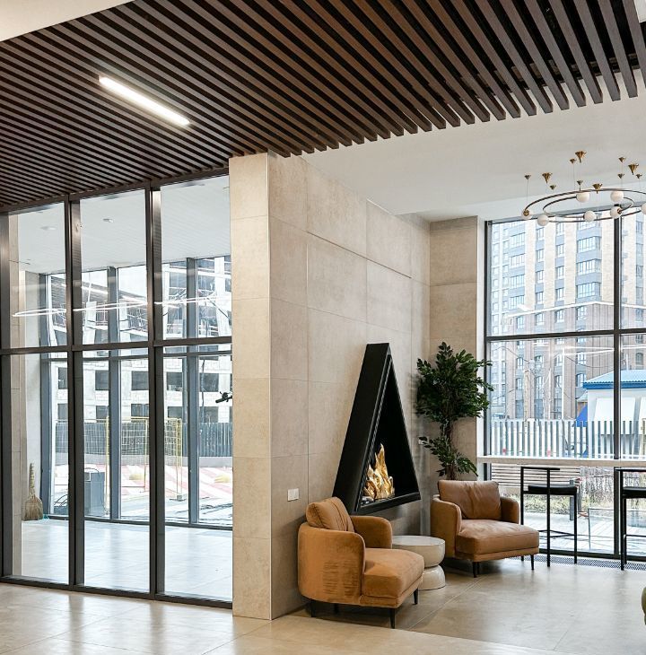 Уютное лобби, закрытая территория, видеонаблюдение 24/7.