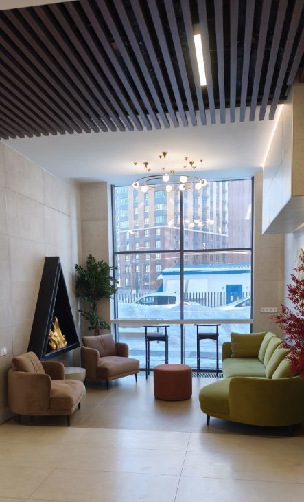 Уютное лобби, закрытая территория, охрана, видеонаблюдение 24/7.