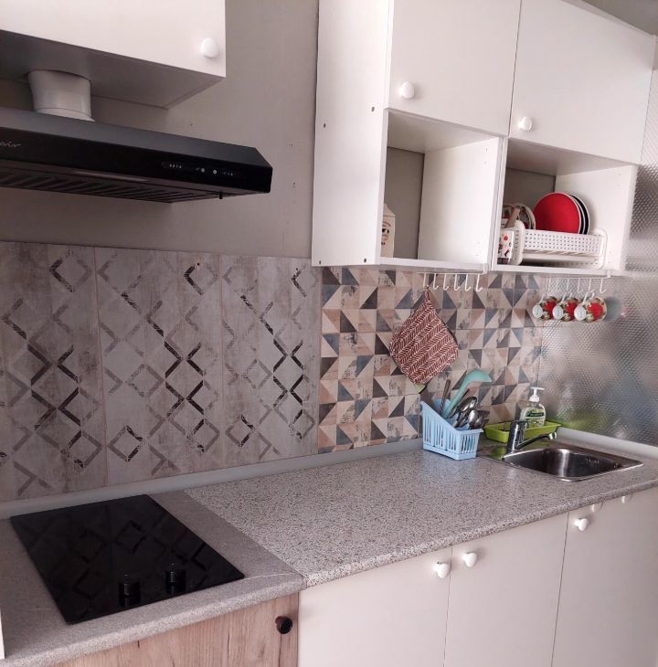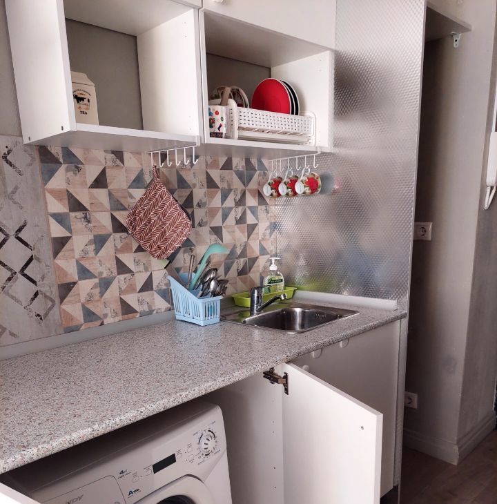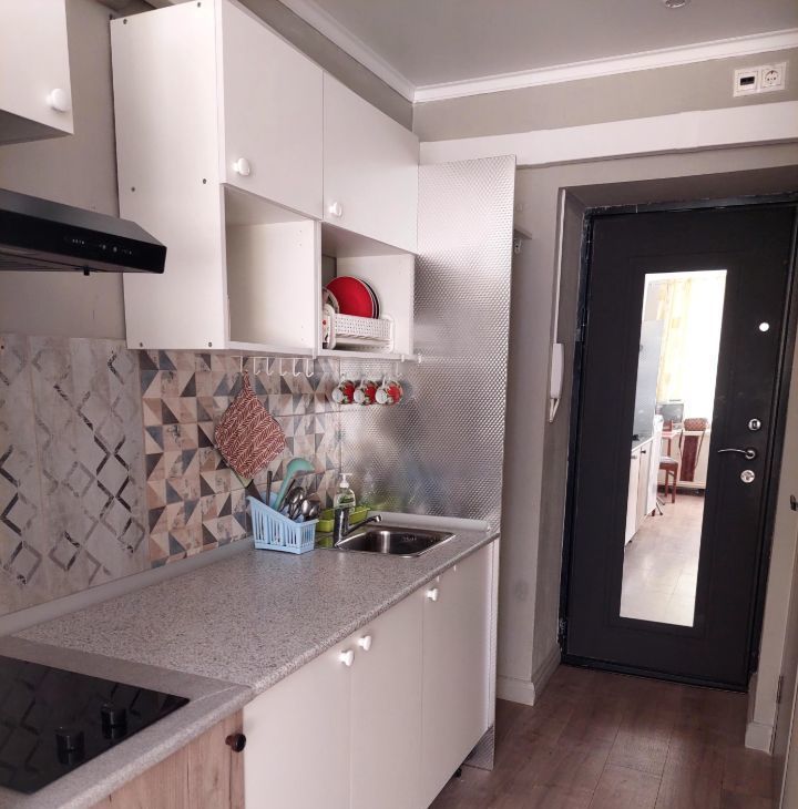 Дом кирпичный- квартира очень теплая. Первый этаж- высокий. Окна выходят во внутренний тихий двор .Квартира укомплектована.Все для проживания имеется: мебель в комнате, кухонная мебель, электроплита стеклокерамика, вытяжка, обеденный стол, стулья, стиральная машина, холодильник, чайник, телевизор, пылесос. Санузел совмещенный: душевая с современным смесителем, тропический душ. Входная дверь с зеркалом.