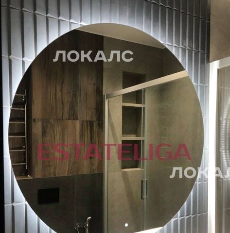 - Большое зеркало с подсветкой в ванной комнате, просторная душевая