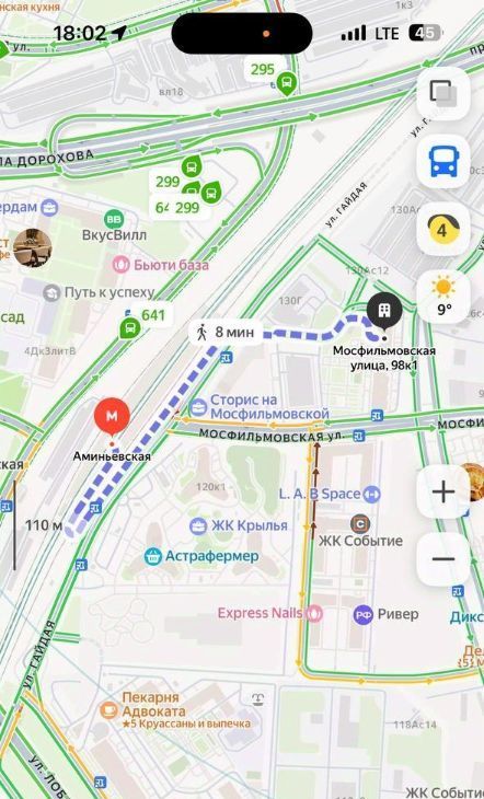 7 минут пешком до метро "Аминьевская",