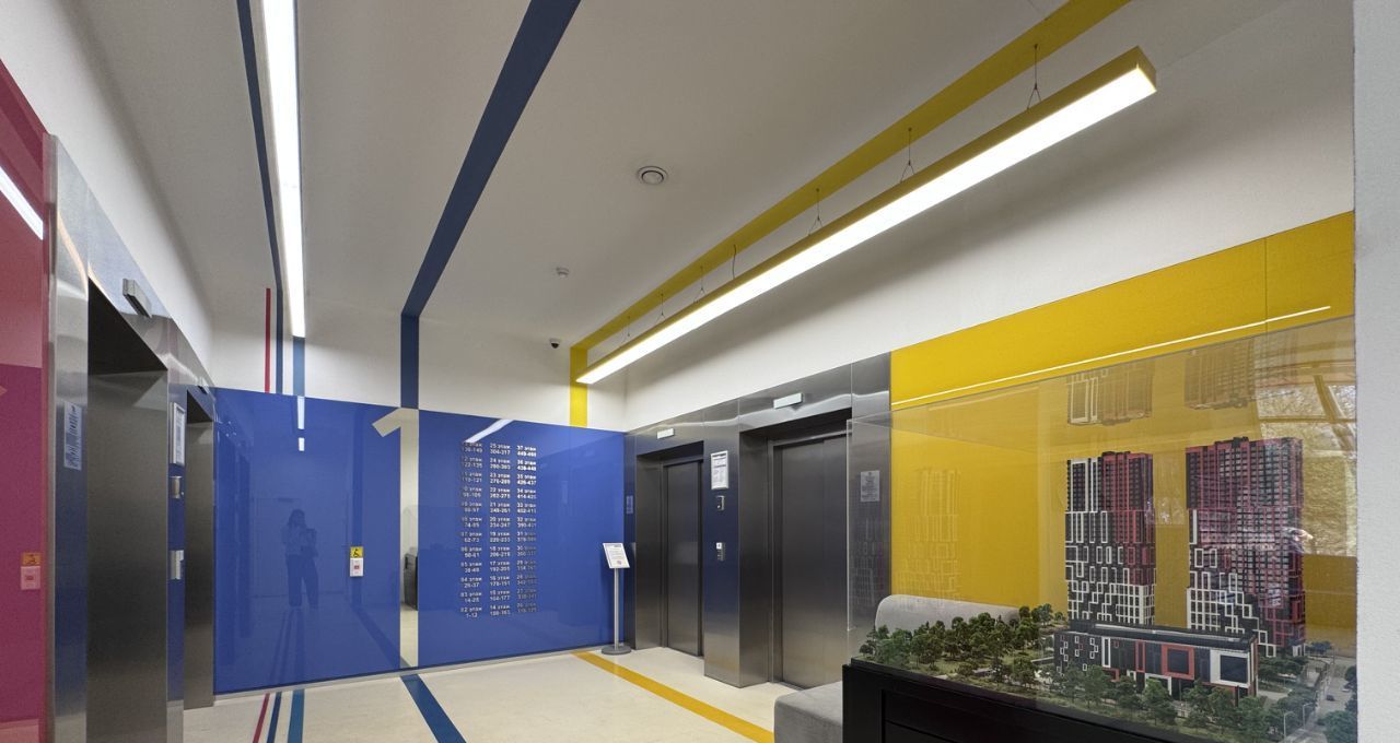 На первом этаже дома расположены гостевой санузел, лапомойка и коворкинг. в доме предусмотрен консьерж.