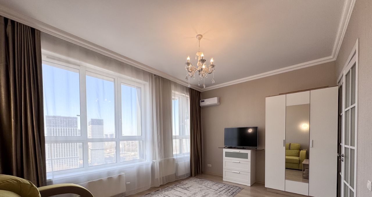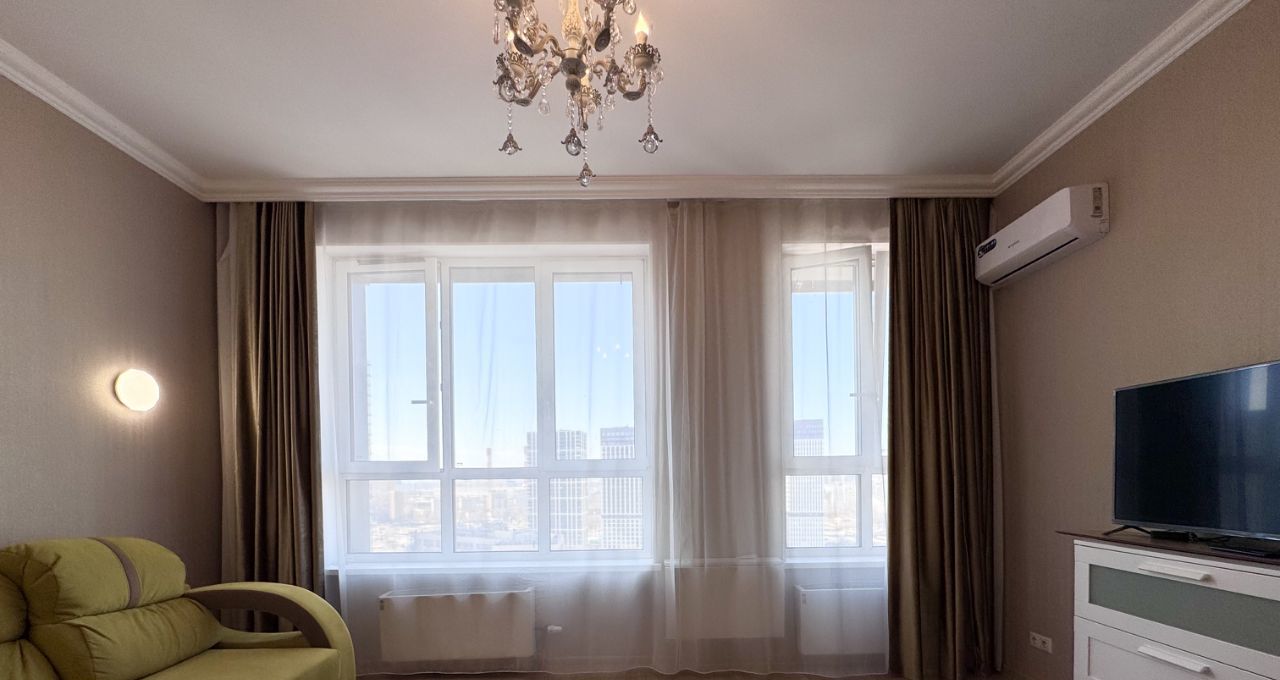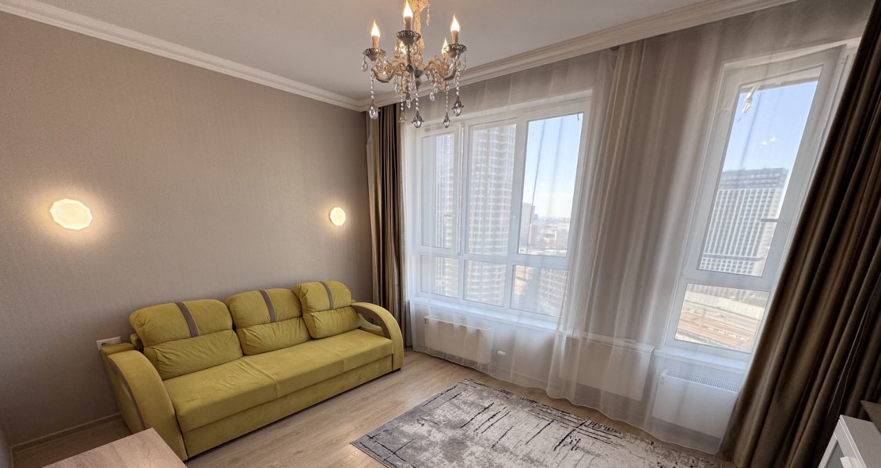 Квартира общей площадью 32,3 кв.м расположена на 19-м этаже 38-этажного дома, построенного в 2021 году.