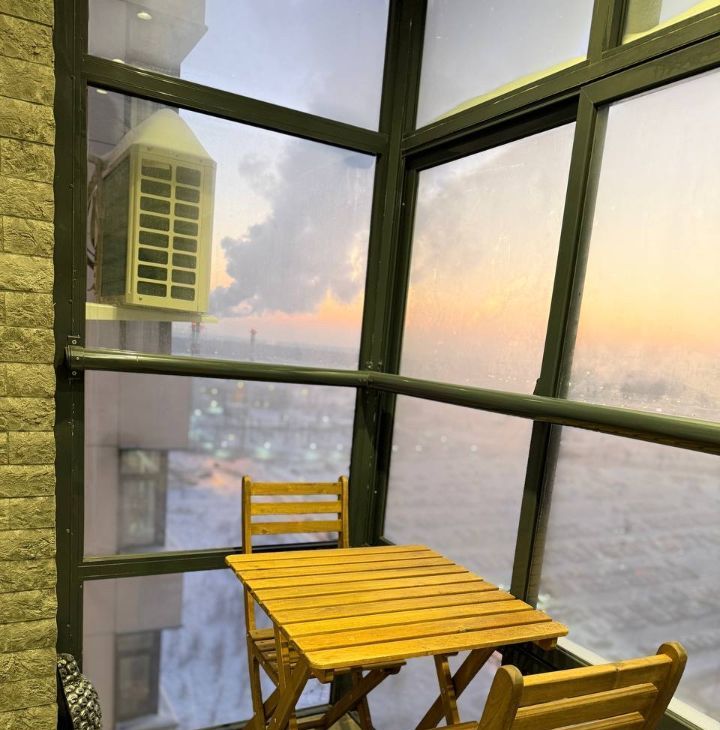 Удобная лоджия с панорамным видом и красивым закатом, идеально подходит для отдыха и приятных вечеров