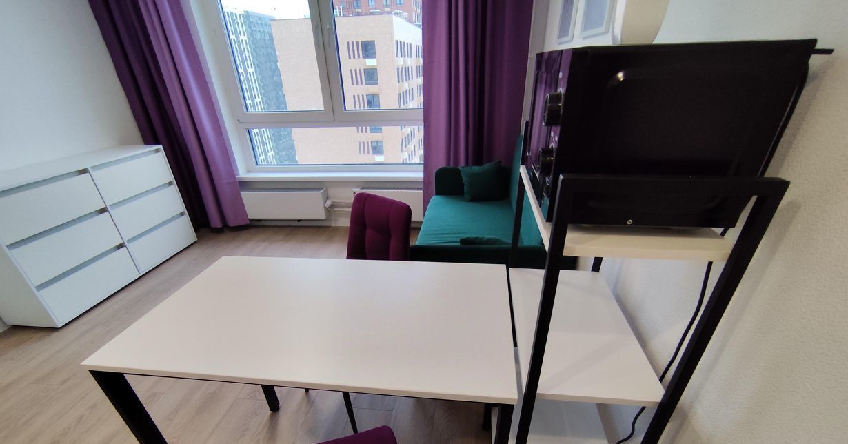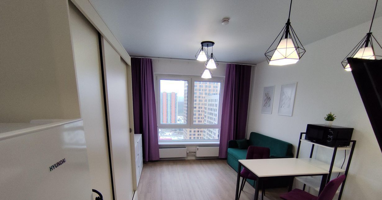 Сдаётся НОВАЯ (никто не жил) уютная студия с евро-ремонтом в современном доме на 18-м этаже 19-этажного здания. Общая площадь квартиры составляет 20 кв. м., ысота потолков — 2,68 метра. Вид на дворы, лес и реку Сходня.