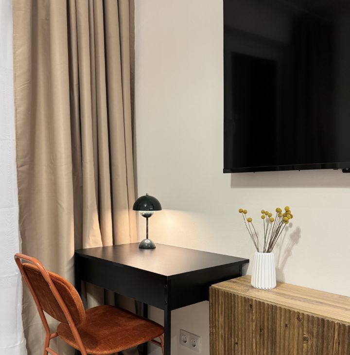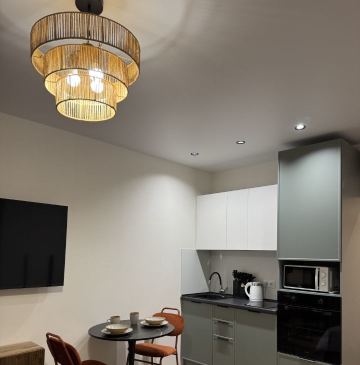 Сдается стильная студия с дизайнерским ремонтом в новом монолитном доме 2026 года постройки. Квартира новая, ранее никто не проживал. Для жизни предусмотрены все необходимые удобства: холодильник, стиральная машина и телевизор, кондиционер. Спальня оборудована удобной кроватью и вместительными шкафами. Кухня оснащена посудой и современной техникой, включая микроволновую печь, духовку и чайник. Заезжай - живи.