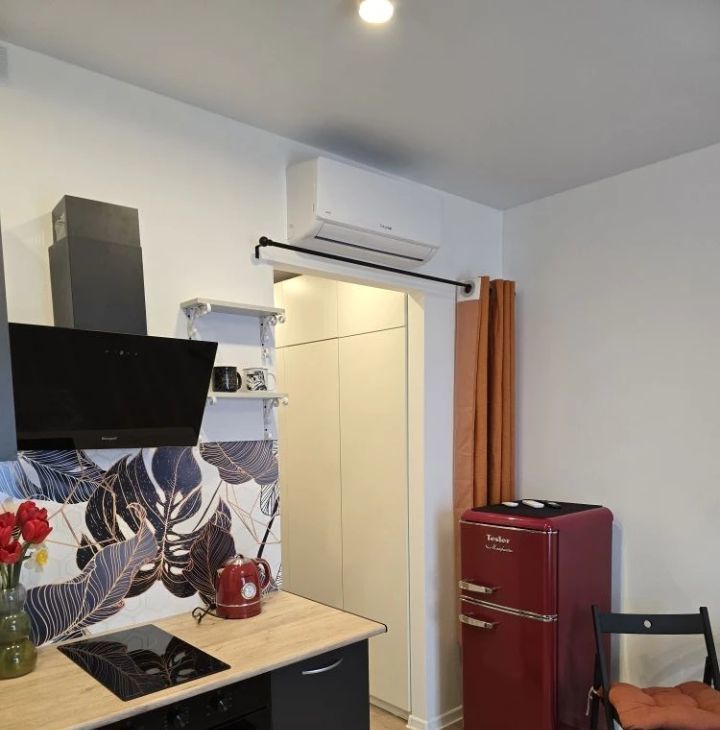 Сдаётся уютная студия с дизайнерским ремонтом площадью 20 кв. м на 13-м этаже 19-этажного дома. Высота потолков составляет 2.7 метра, а окна выходят на парковую зону реки Сходня, что обеспечивает тишину и спокойствие.