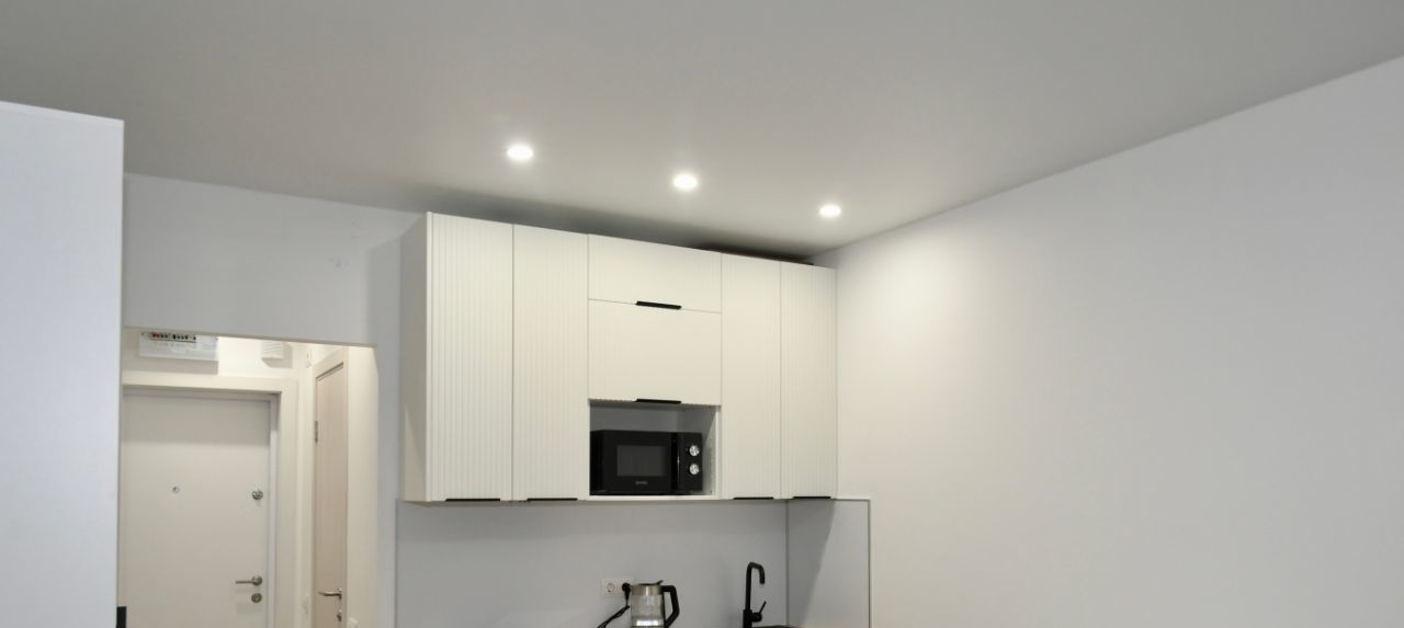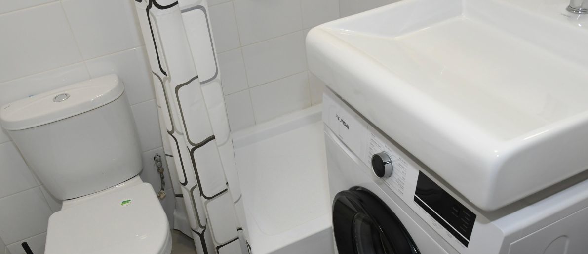 В квартире выполнен качественный евроремонт, что создаёт атмосферу уюта и комфорта. Пространство студии организовано с учётом всех потребностей: в квартире есть мебель, установлена современная техника — холодильник, стиральная машина. Ванная комната оборудована душевой кабиной.