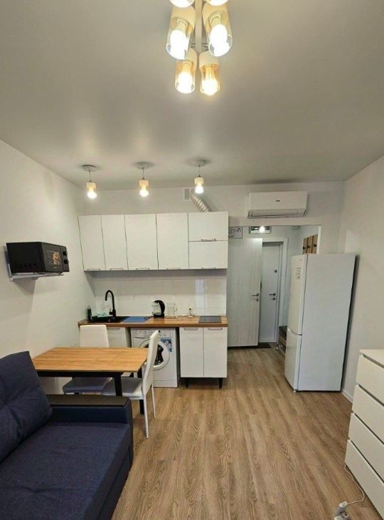 Сдаётся светлая квартира-студия с евроремонтом и совмещённым санузлом в ЖК Митинский Лес, без депозита!