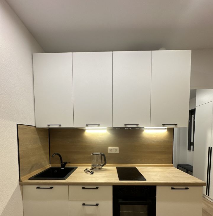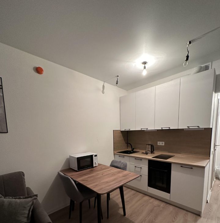 Общая площадь студии 20 метров. В квартире все предусмотрено для комфортного проживания : диван / кровать с ортопедическим матрасом , мягкие удобные обеденные стулья телевизор смарт тв 50 диагональ . Гладильная доска и утюг. Достаточное количество мест для хранения ( вместительный двухстворчатый шкаф в прихожей , трехстворчатый шкаф в комнате с антресолями ) светлая кухня с вытяжкой , подсветкой , электро плитой и духовым шкафом , чайником и микроволновой печкой . Кухня укомплектована новой посудой , кастрюли , сковорода, тарелки , вилки )