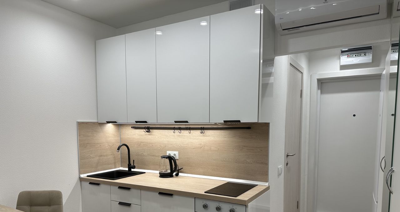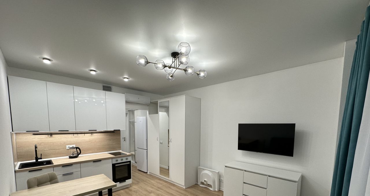 Студия укомплектована по максимуму - посуда, все кухонные принадлежности, подушки, одеяло, наматрасник, инвентарь для уборки.