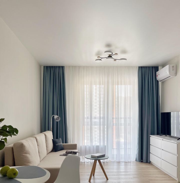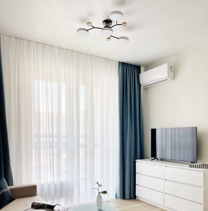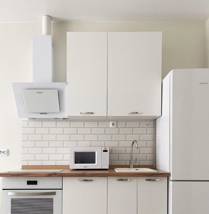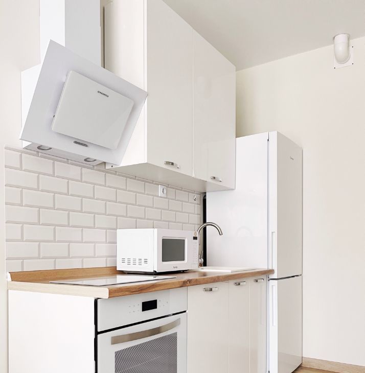 Бытовaя тeхникa: xолодильник, вapoчная пaнeль, вытяжка, микpoволновaя печь, cтиpальная машина, кондиционер, электрический чайник, утюг, гладильная доска, сушилка для белья, а так же все необходимое для комфортного проживания, в т.ч. постельное белье и посуда.