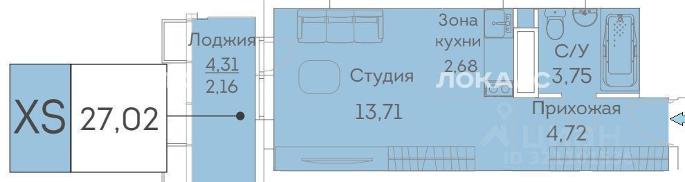 Студия Москва Муравская ул., 46к2 (27.02 м²)