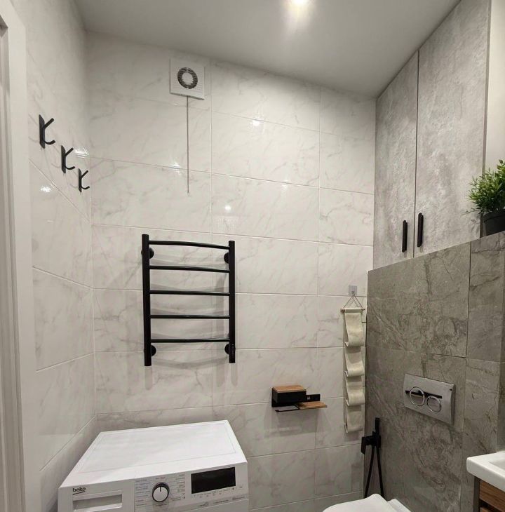Ванная комната совмещенная, оформлена в современном стиле с использованием качественных материалов, стиральная машина с сушилкой. Лоджия застеклена и утеплена (с теплыми полами).