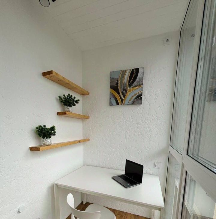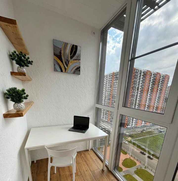 Большой утепленный балкон (теплый пол и стеклопакет) просторный кабинет и лаунж-зона, откуда открывается шикарный вид!