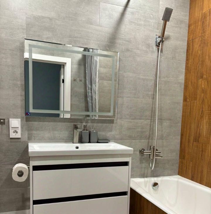 Стильная и уютная ванная комната оборудована всем необходимым для вашего удобства.