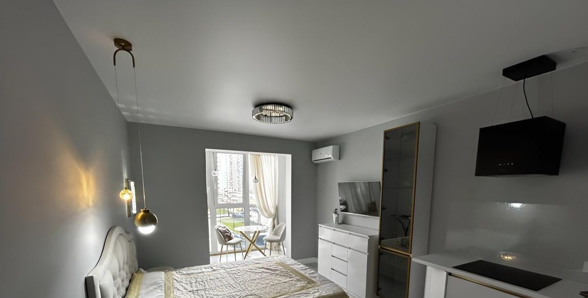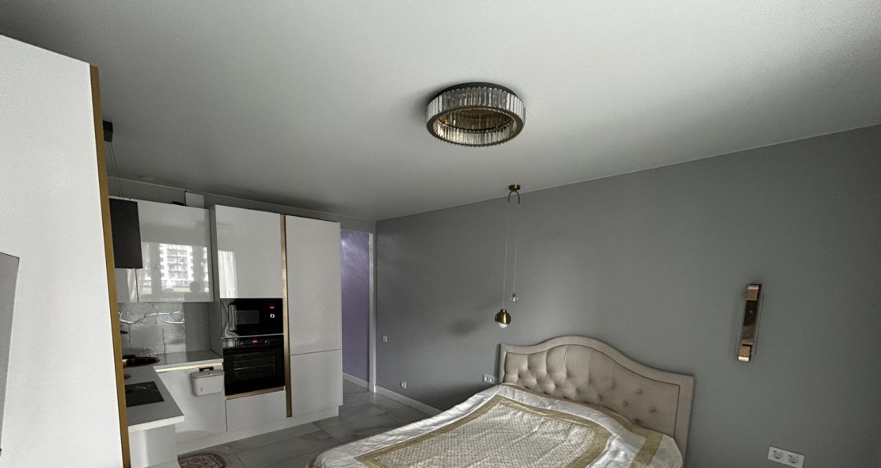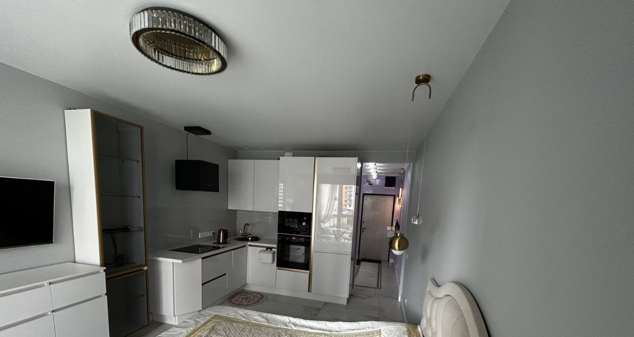 Квартира с дизайнерским ремонтом и полностью меблирована. В комнате и на кухне есть вся необходимая мебель. Для вашего комфорта установлены кондиционер, холодильник, посудомоечная машина, телевизор и стиральная машина. Ванная комната оборудована душевой кабиной и совмещена с санузлом. В квартире проведён интернет, поэтому можно сразу подключиться и оставаться на связи.