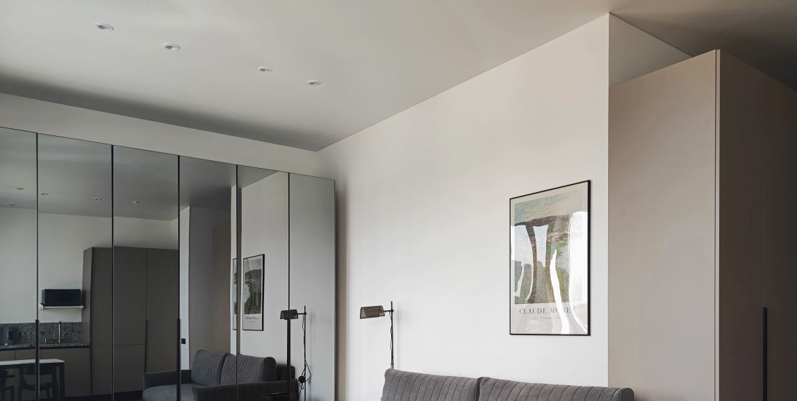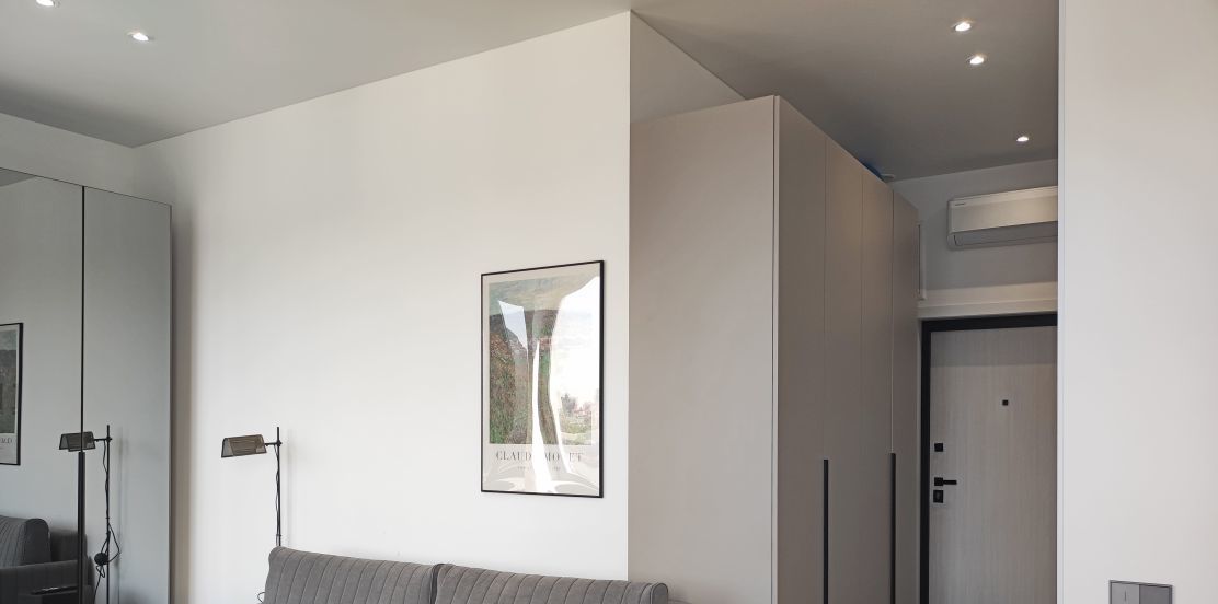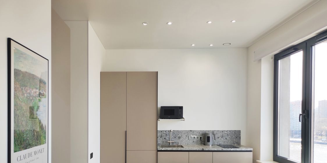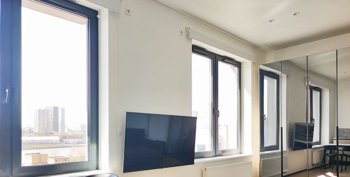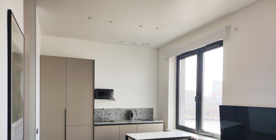 Современная квартира-студия с видом на Набережную Марка Шагала полностью укомплектована современной техникой.