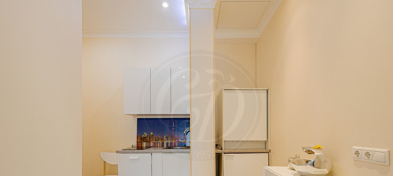В едином пространстве спланирована спальня и зона кухни. Апартаменты полностью меблированы и оснащены всей необходимой техникой для комфортного проживания.