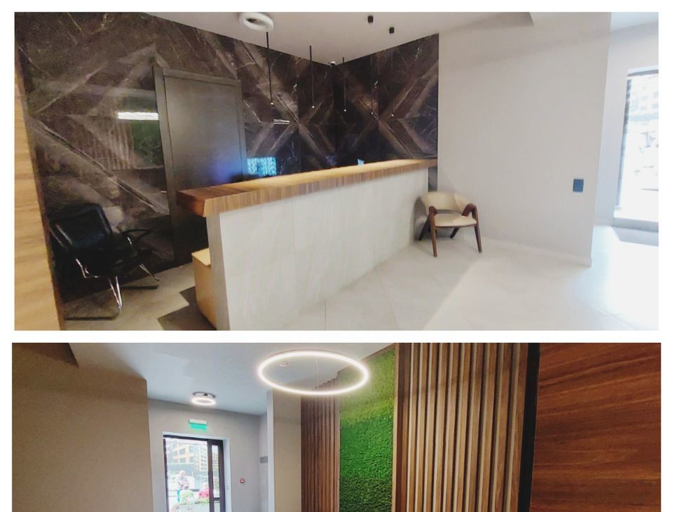 На первом этаж размещены конференц-зал и бизнес-зона, видео наблюдения все 8 этажей. В лобби и общих зонах переговорная, диваны, розетки. На всей территории комплекса и во внутреннем дворе доступны услуги консьержа и круглосуточный Wi-Fi.