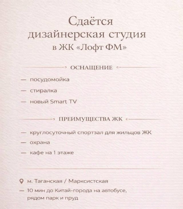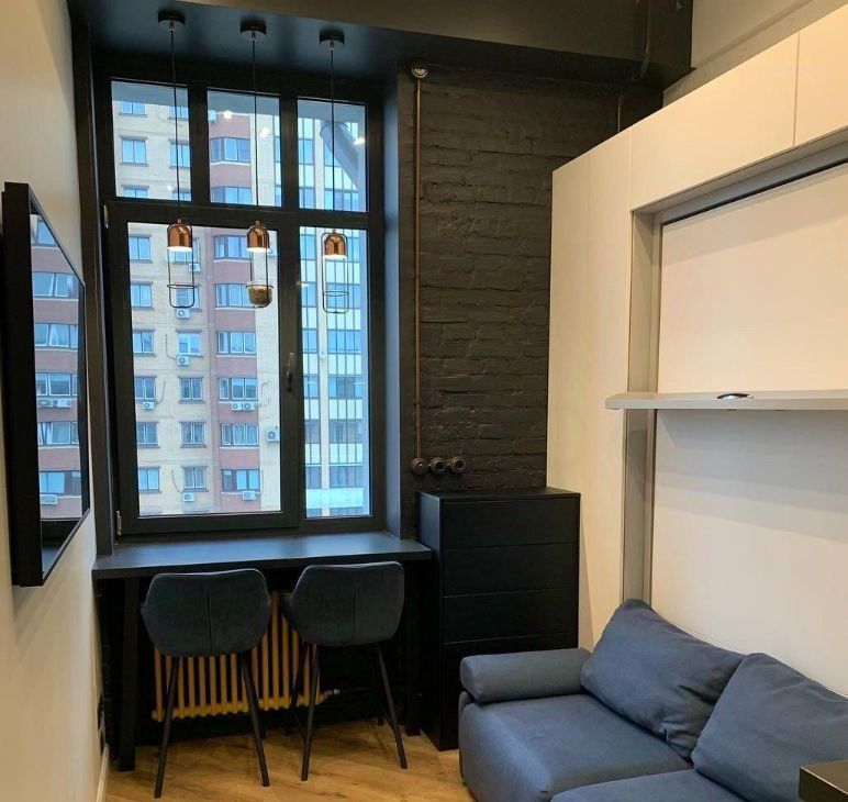 Предлагаем в аренду стильные апартаменты-студию площадью 17 кв. м на 7-м этаже современного дома. Высокие потолки (3,5 метра) создают ощущение простора и свободы. Удобное расположение: 1520 минут до Китай-города на автобусе, от Таганской — 10 минут на автобусе, всего 15 минут пешком до Римской.