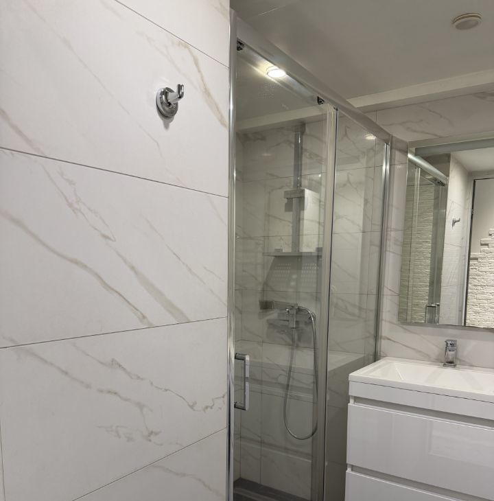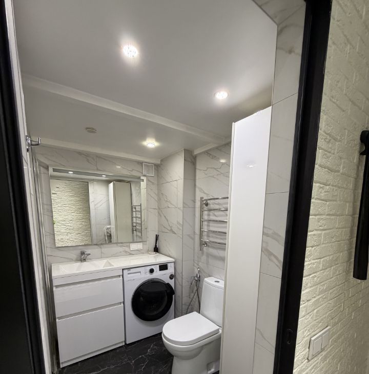 Просторный совмещенный санузел / душевая кабина / стиральная машина