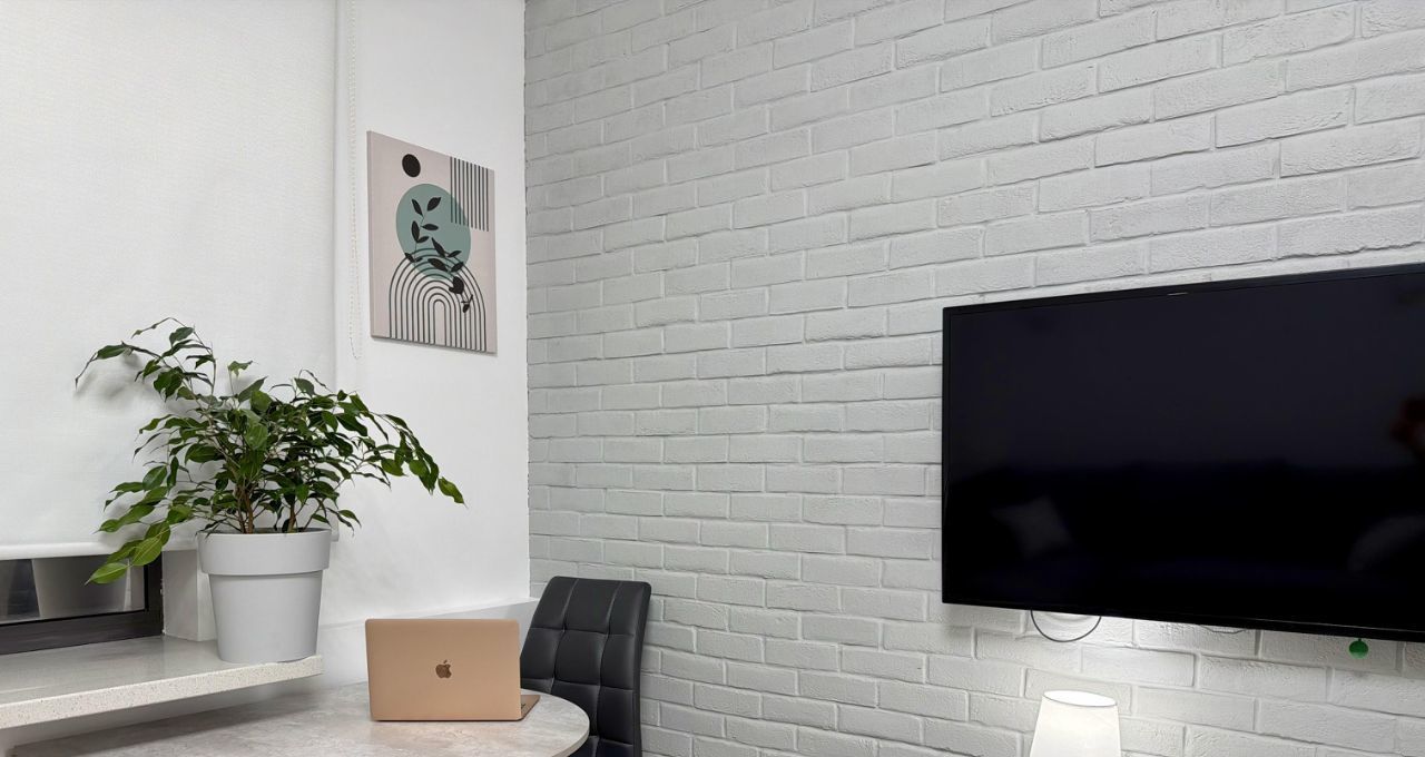 В студии выполнен дизайнерский ремонт, что создает уютную и современную атмосферу.