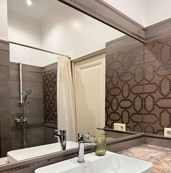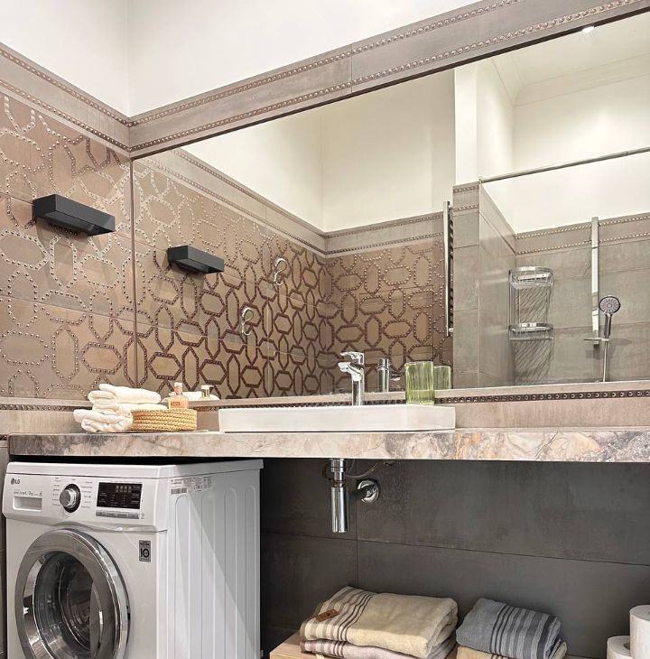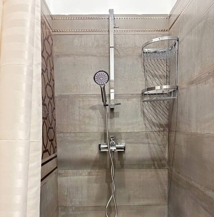 Совмещенный санузел. Душевая кабинка. Стиральная машина с сушкой, гладильная доска, доп. напольная сушка для белья. Датчики протечки и бойлер, что особо актуально летом в Москве.