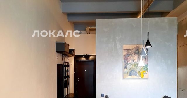 Полностью оборудованная кухня, включая ПММ. Промышленный стиль интерьера на кухне подчеркивает вытяжка, выполненная на заказ, видимые коммуникации и цвет стен. Большое количество встроенных шкафов, позволяющих вместить все хозяйственные предметы обихода.