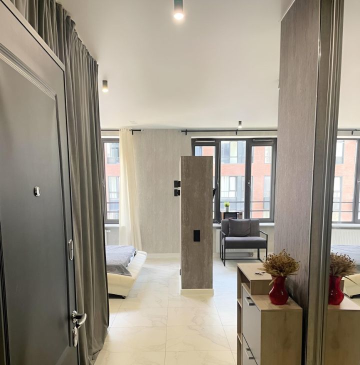 Предлагается в аренду стильная студия с дизайнерским ремонтом в 10 минут ходьбы от метро Дмитровская.