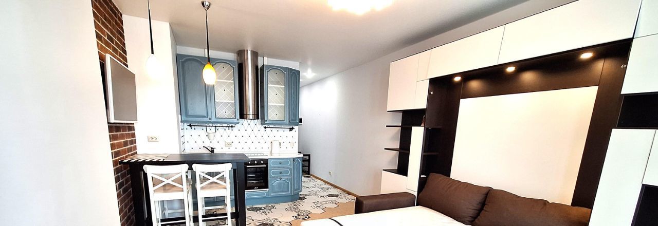 Сдается стильная студия с дизайнерским ремонтом в современном монолитном доме.