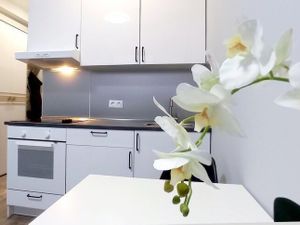Есть вся необходимая мебель и техника: кондиционер, посудомойка, мини-печь, микроволновка, чайник, холодильник, вытяжка, стиралка-сушилка.