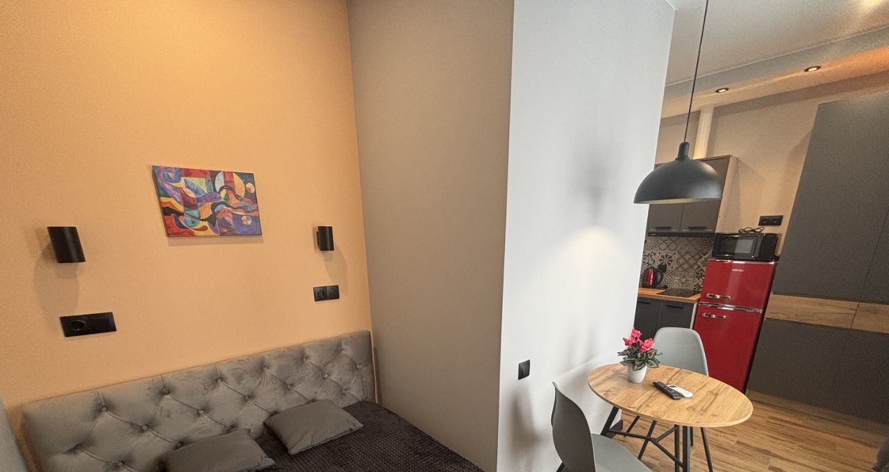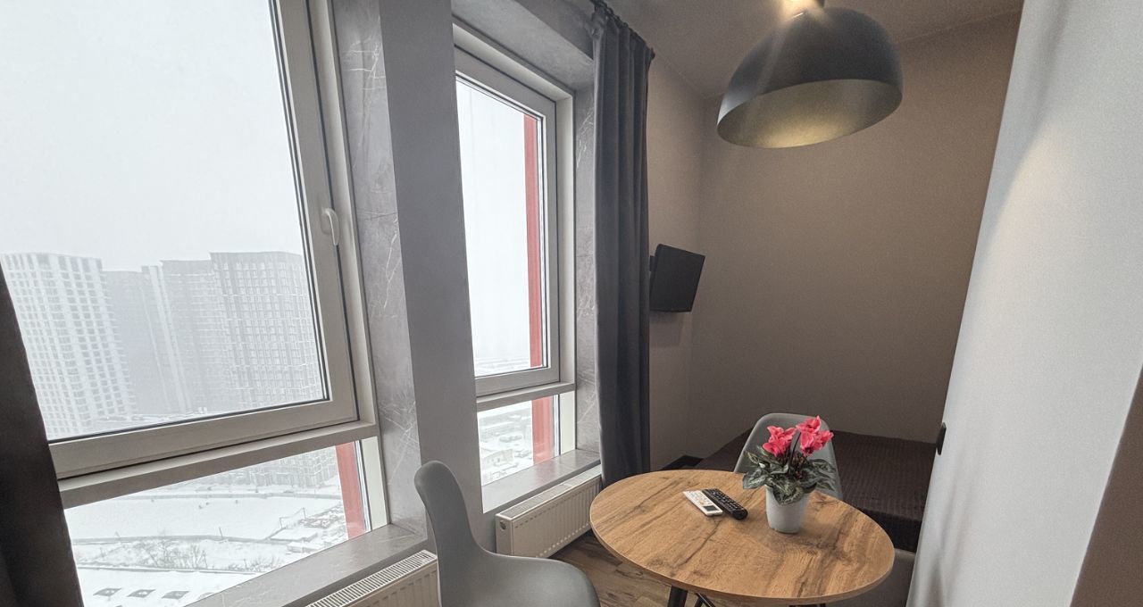 Уникальная дизайнерская студия для проживания одного человека, которая оснащена всей необходимой техникой и мебелью. Планировка продумана до мелочей. Замечательный панорамный вид из окон!