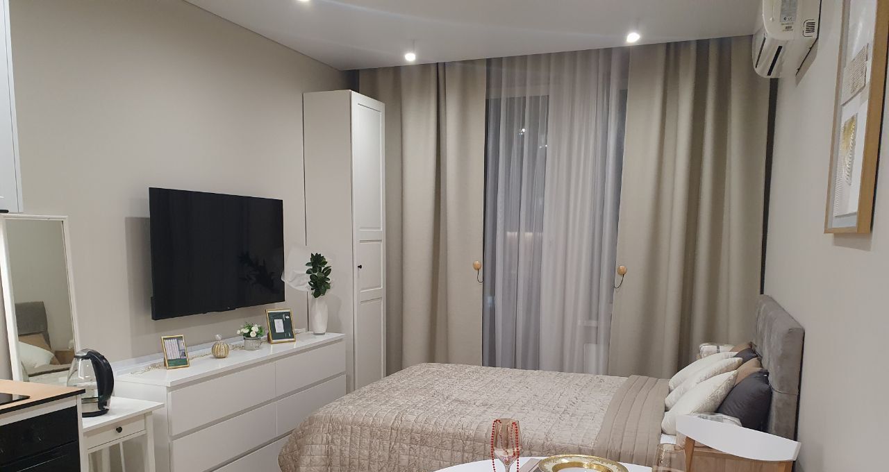 Сдается светлая уютная студия в ЖК "High Way". Современный апарт-комплекс бизнес класса с закрытой охраняемой территорией, подземной парковкой, видеонаблюдением. Дом новый (сдался в 2025г), квартира сдается впервые (мебель и техника новая). Добротный современный ремонт, парящие натяжные потолки, на полу ламинат. Квартира полностью оснащена современной техникой: