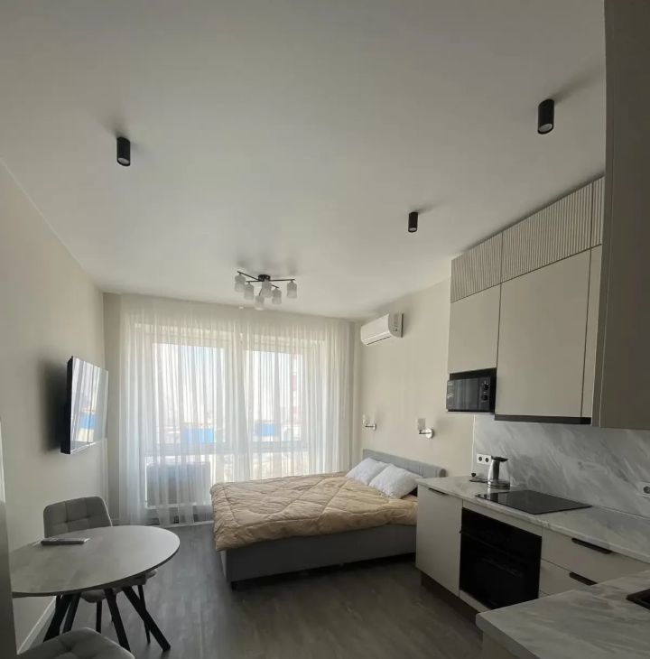 Планировкой предусмотрена встроенная кухня, обеденная зона. спальное место кровать (160х200), совмещенный санузел с дванной.